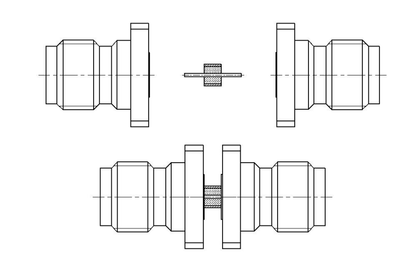 50 ohm karakteristiske impedansglassisolatorer med standard SMA, 2,92, 2,4, osv. millimeter bølgekontakter sammenkoblet i begge ender for elektrisk ytelsestesting.