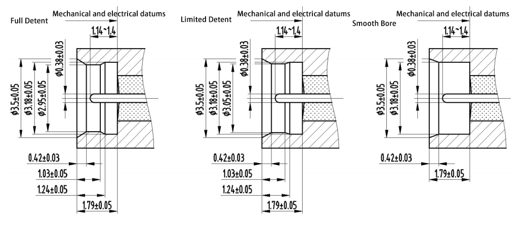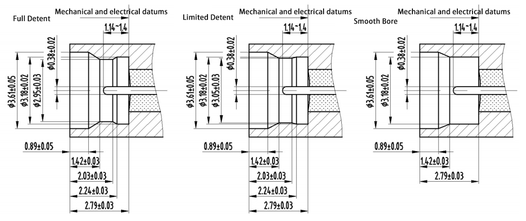 SMP-J-type luftforseglede RF-koaksiale kontakter har tre grensesnittformer: full escapement, halv escapement og lett hull. Ved navngivning av modellen betyr F full escapement, L betyr halv escapement, og S betyr lett hull. Grensesnittdimensjonene er delt inn i standard grensesnittdimensjoner og korte grensesnittdimensjoner, som begge kan kombineres med plugger av typen SMP-K.