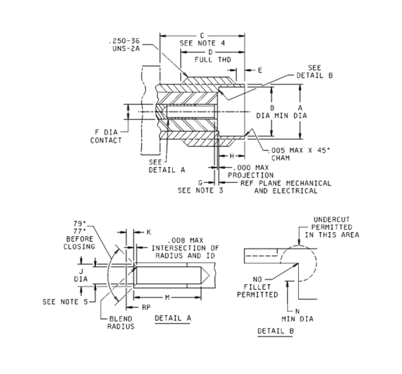 3. Tidligere kvalifiserte deler som bruker en 0,030 tommer (0,76) maksimal kontaktresesjon er ikke akseptabelt for myndighetenes bruk. Det bør utvises forsiktighet for å avgjøre om en .030 resesjonsdesign brukes under vedlikehold og utskifting av deler.