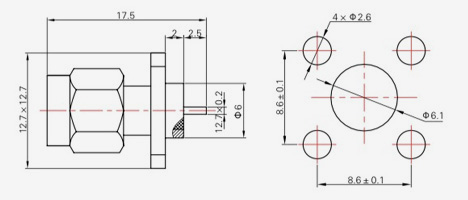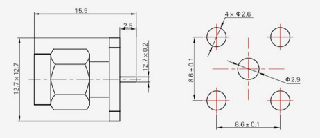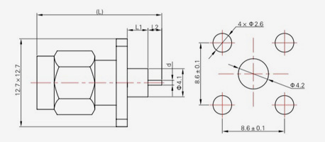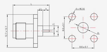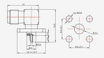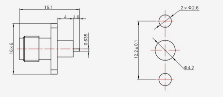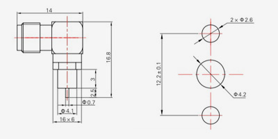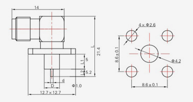 | SMA-KFD45 | 14.4 | 2.4 | 0,5×0,2 | Φ4.1 | Φ4.2 |