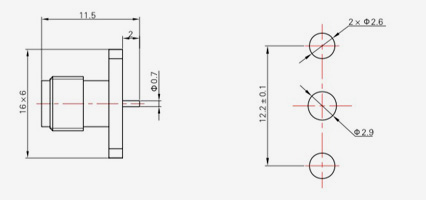 | SMA-KFD68 | 15.2 | 3.2 | 0,5×0,2 | Φ2.1 | Φ2.2 |